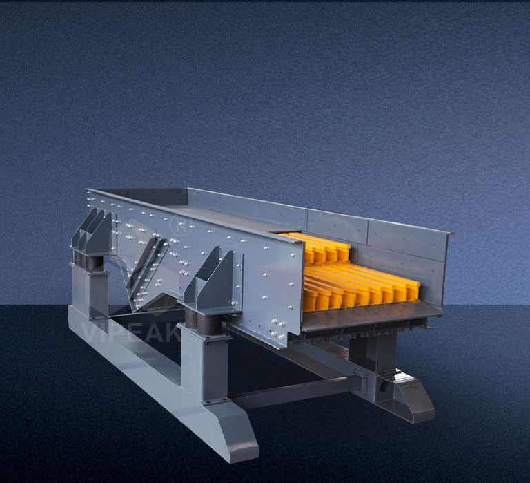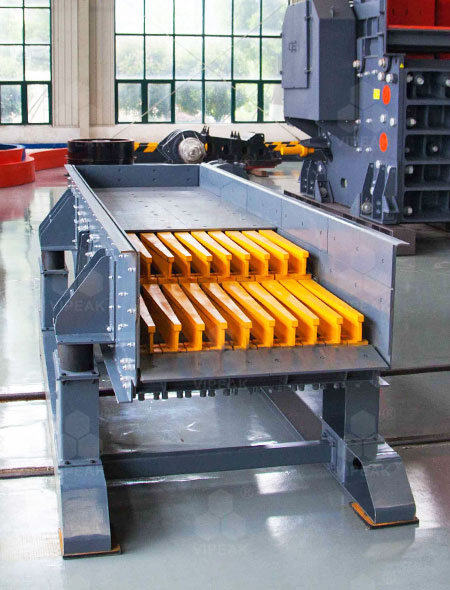 GF Vibrating Feeder adopts a drop structure composed of two layers of grizzly bars, which can effectively screen out fine materials whose size is smaller than that of CSS (or tight-edge discharge port) because of double screenings. The removal rate of fine materials can be as high as 90%, greatly reducing the burden of primary crushers.